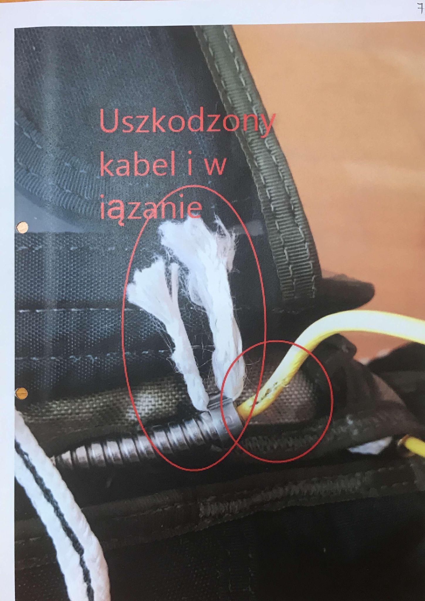- zaburzony proces otwarcia doprowadził do przerzucenia linki, linek wokół pokrowca i zatrzymał pracę pilocika.